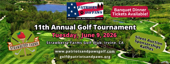 Join us for our 11th Annual Patriots and Paws Charity Golf Tournament. Tuesday, June 9.