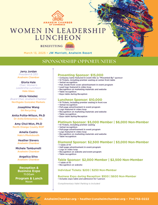 The Anaheim Chamber of Commerce presents the Women In Business Luncheon